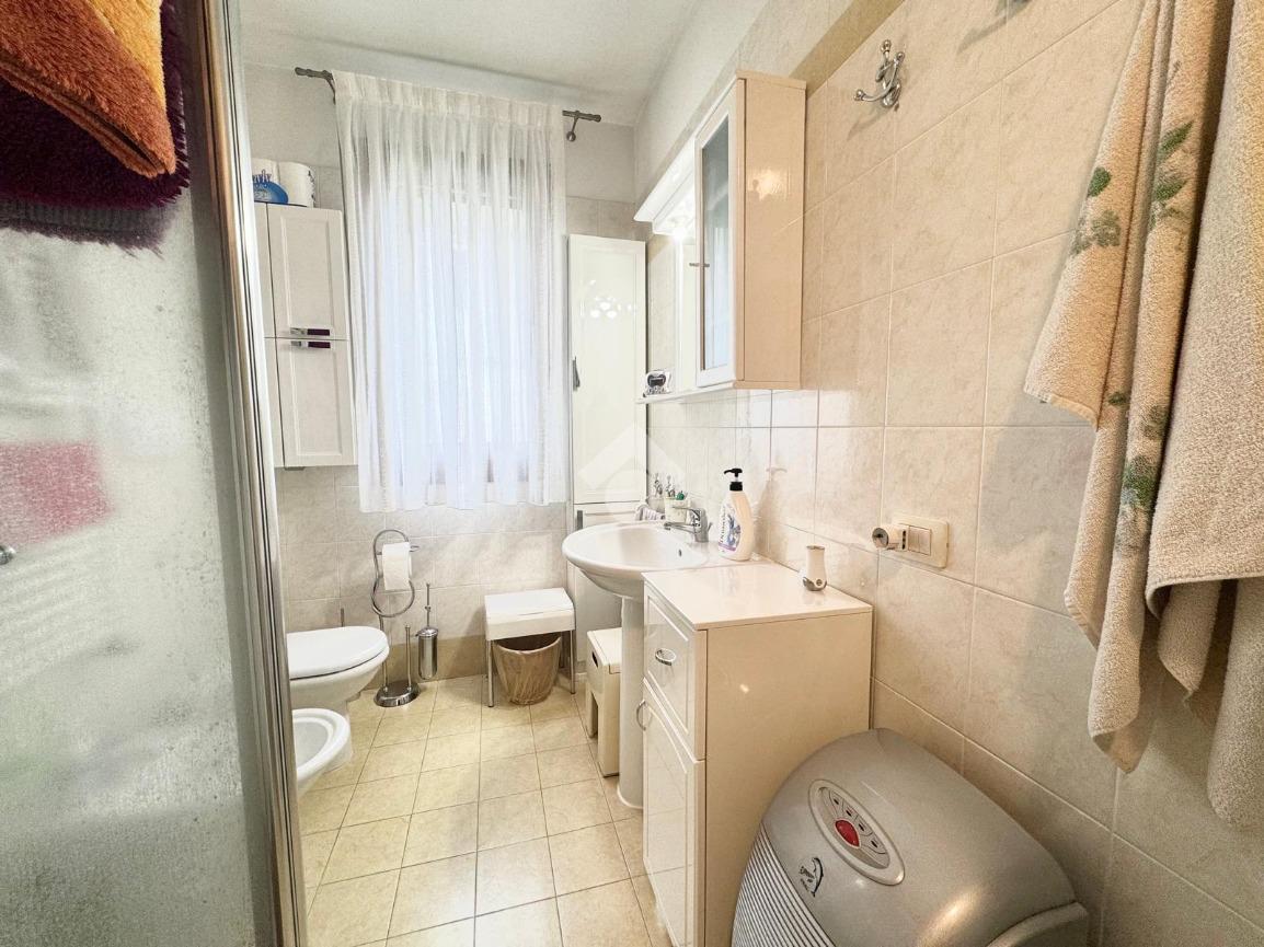 Completa l'appartamento un bagno finestrato con doccia e pratico antibagno ideale per ricreare la zona lavanderia.