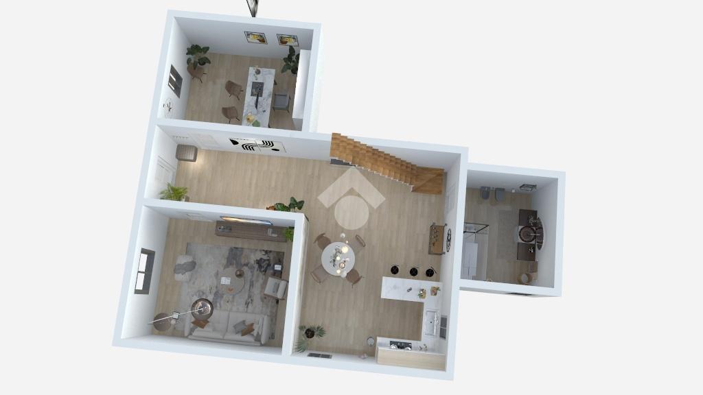 Al piano terra, infatti, troviamo l'ingresso che porta direttamente alla cucina, separata dal soggiorno, un piccolo ripostiglio ed un bagno finestrato. Sempre dall'ingresso è possibile accedere al magazzino di circa 10mq.
