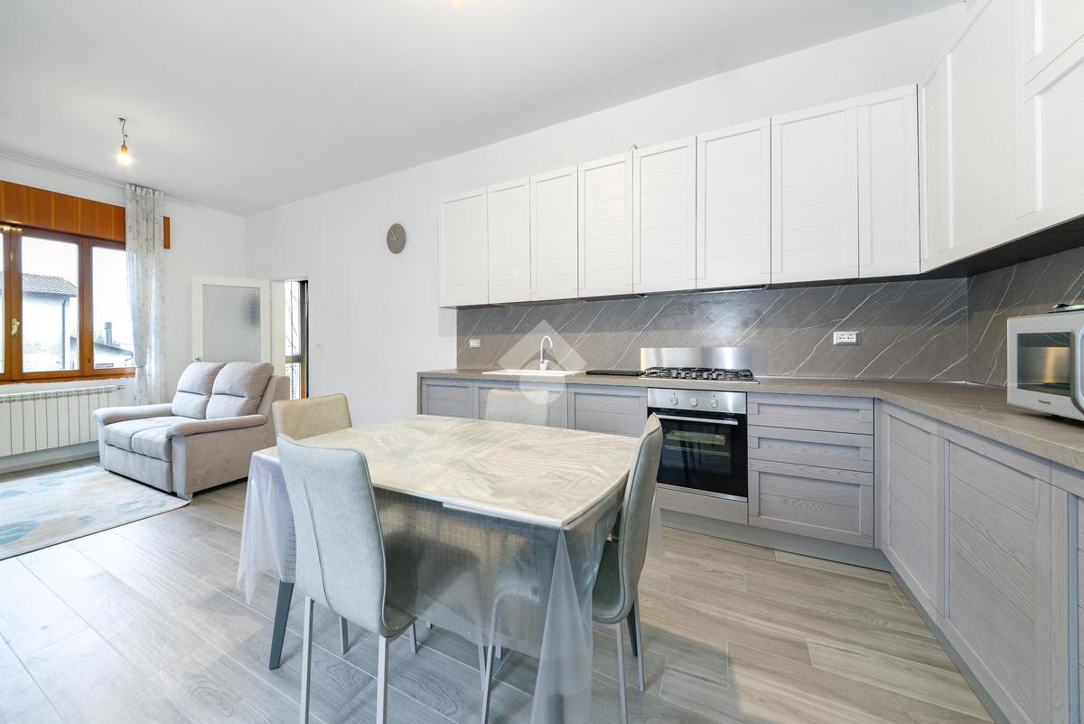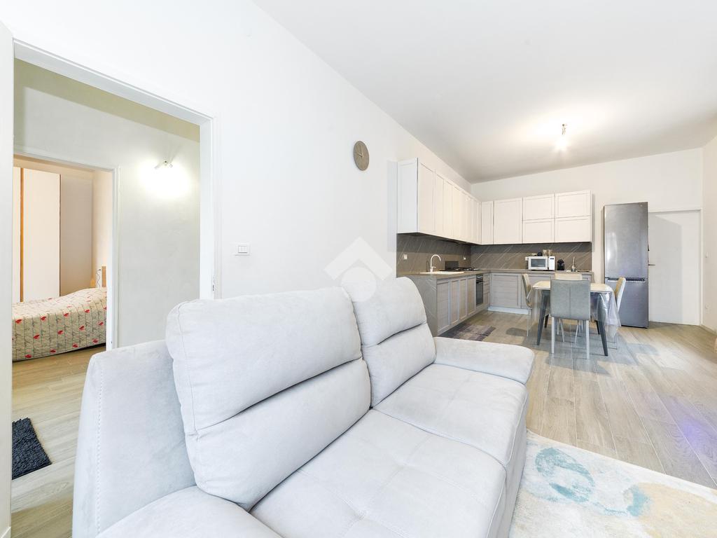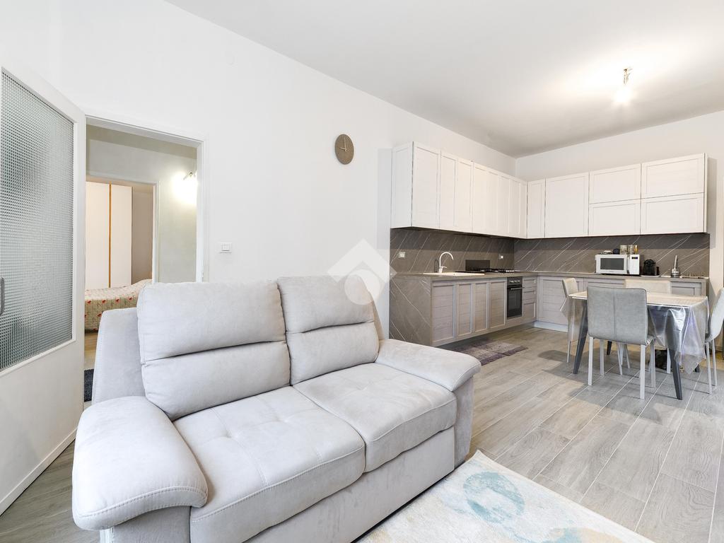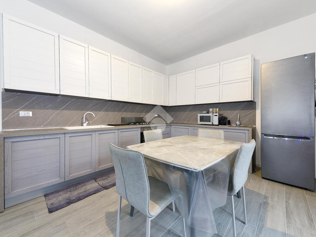 Troviamo un accogliente soggiorno con la spaziosa cucina open-space.
