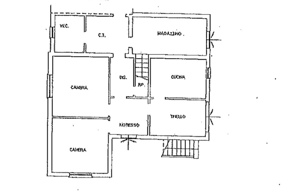 La casa è attualmente composta al piano terra da ; cucina abitabile con tinello dove è possibile creare un soggiorno, due camere matrimoniali, wc e magazzino.