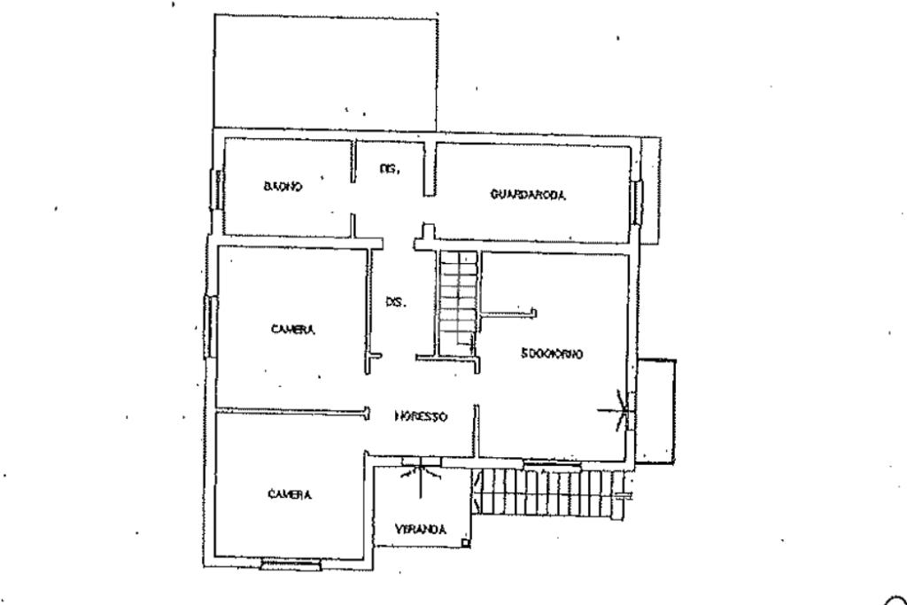Attraverso una scala interna si accede poi al piano superiore dove la distribuzione degli spazi è speculare tra i due piani e rende particolarmente semplice la suddivisione in due unità.