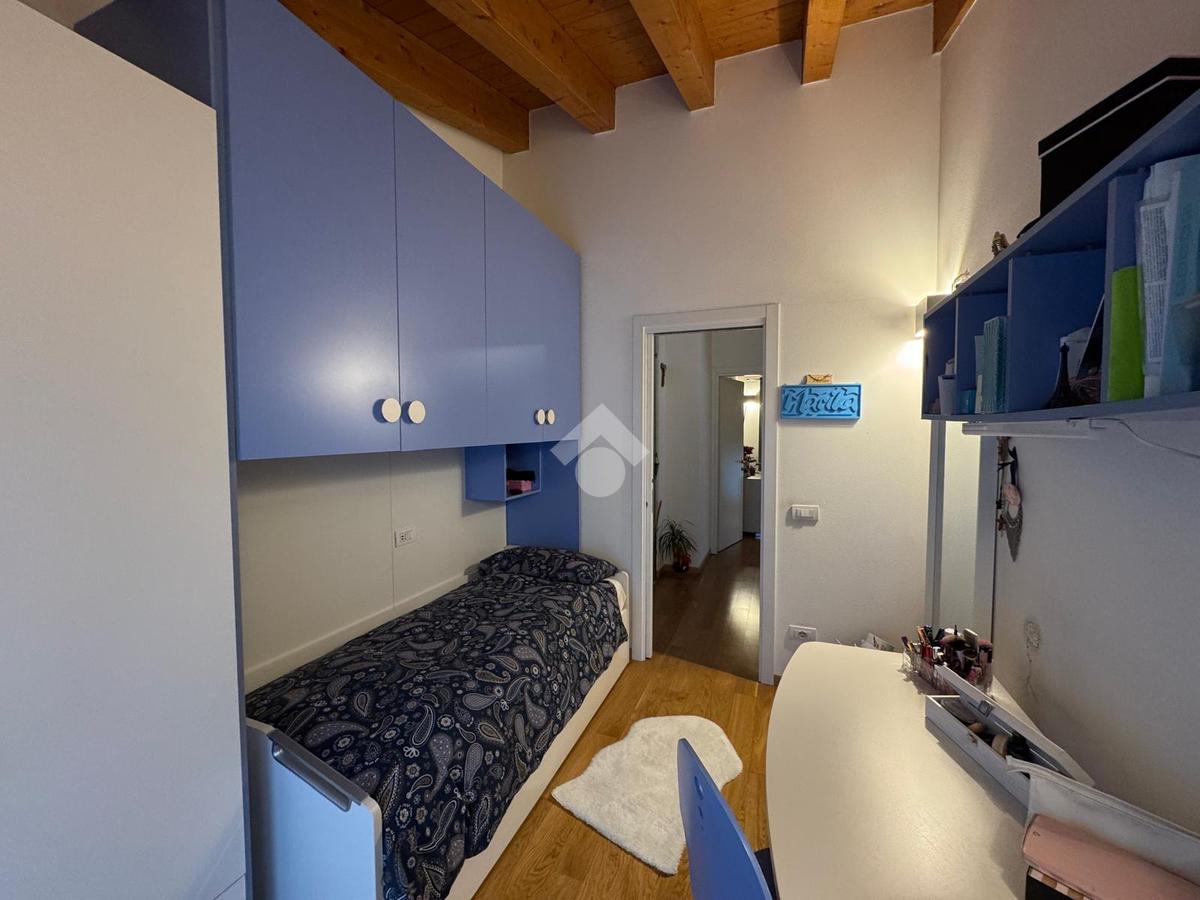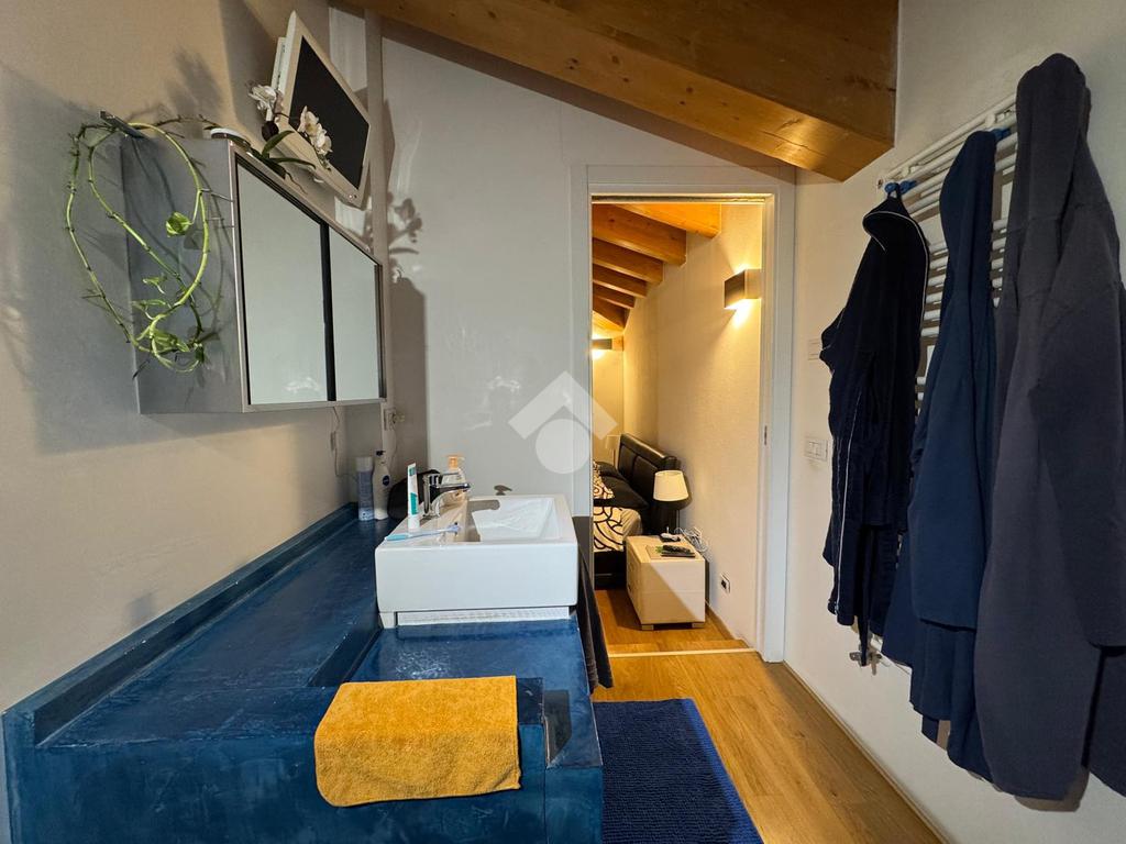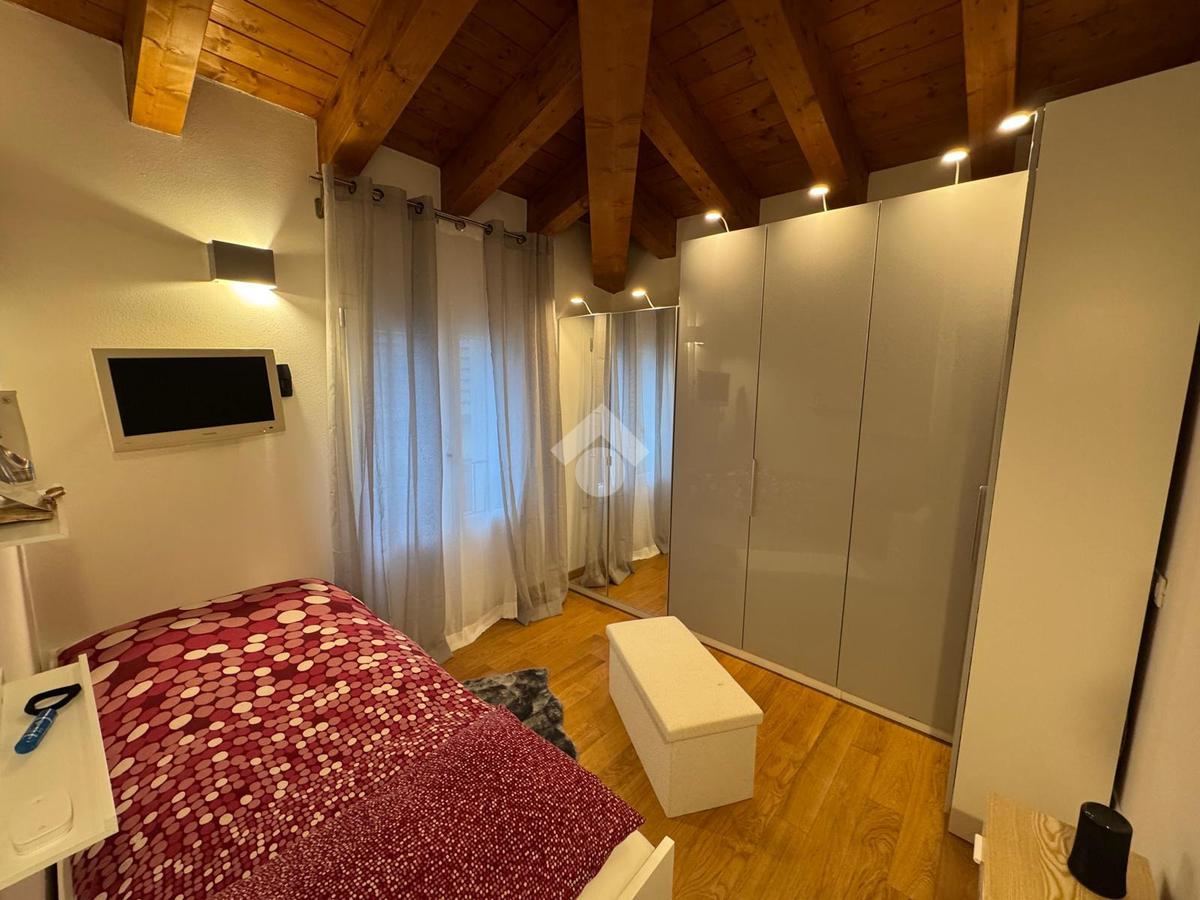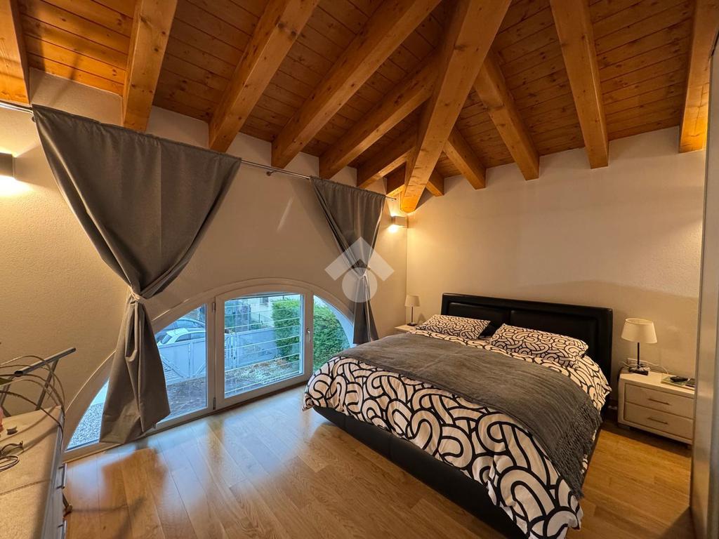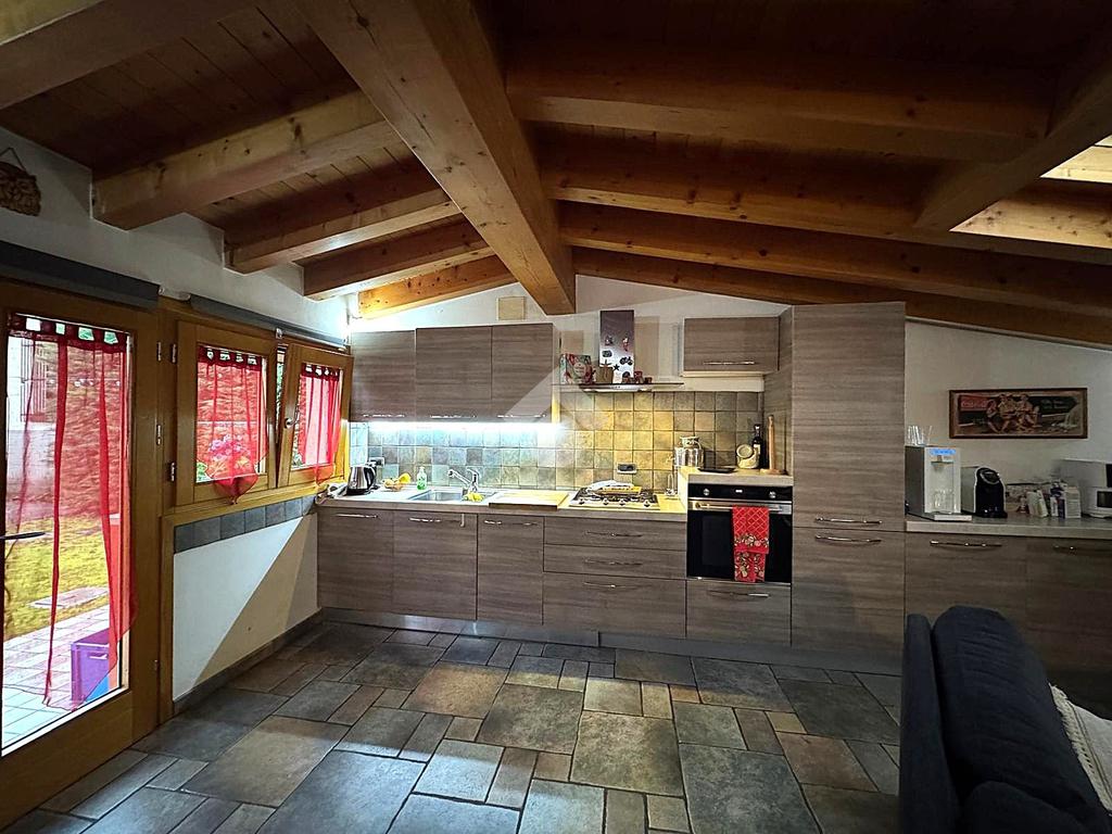L'abitazione, disposta su due livelli, è composta al piano terra da luminosa zona giorno e da un ampio bagno. La zona living è impreziosita da una scala di design che crea una sorta di separazione tra la cucina e il salotto, inoltre l'ambiente risulta molto luminoso grazie alla presenza di un'ampia vetrata.