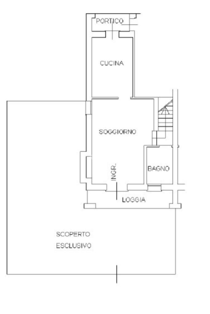Al piano terra troviamo un ampio e luminoso soggiorno, affiancato da una cucina separata abitabile e un primo bagno finestrato con doccia.