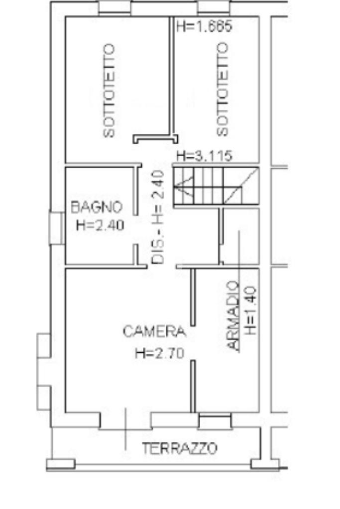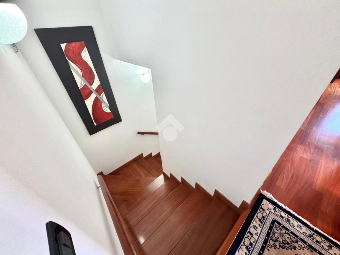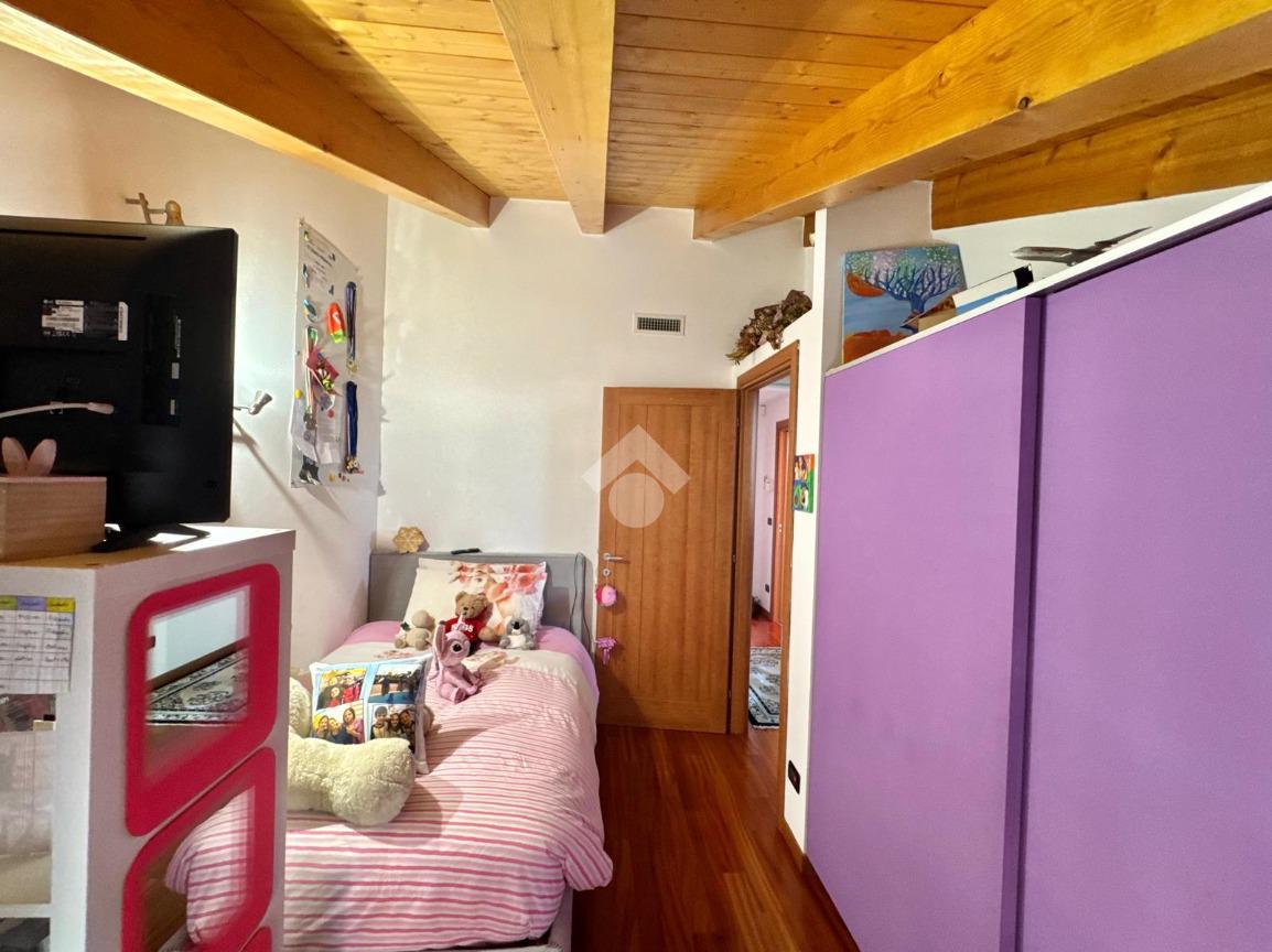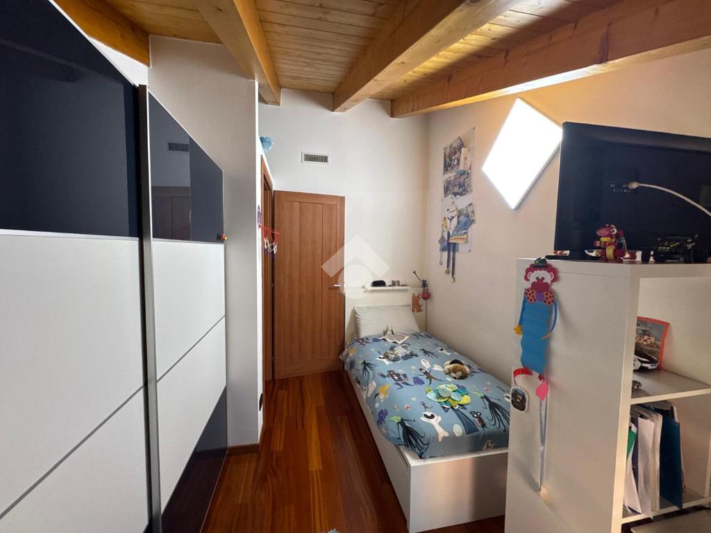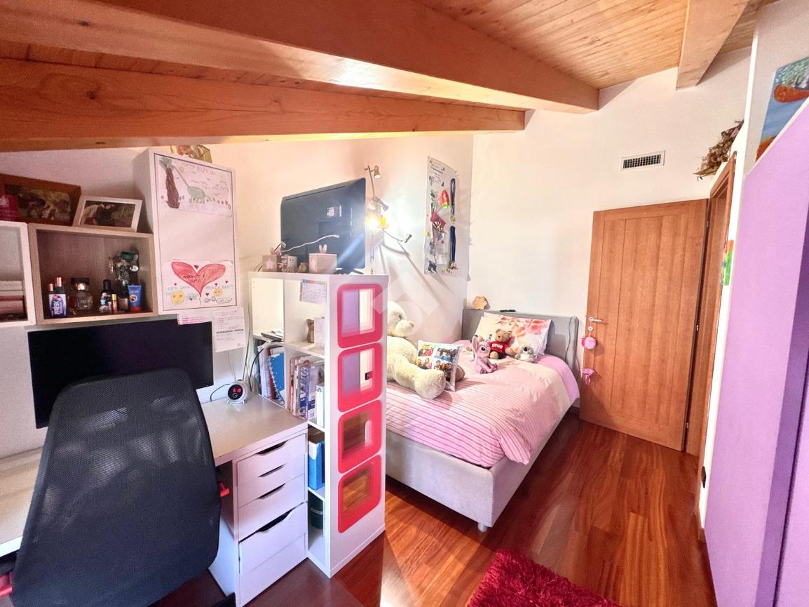 La zona notte, al piano superiore, è composta da due camere singole accoglienti con travi a vista, un secondo bagno anch'esso finestrato con doccia e una spaziosa camera matrimoniale dotata di cabina armadio e accesso diretto al terrazzo.
