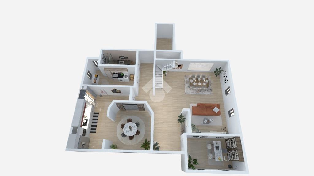 Al piano terra dell'abitazione si trovano un'elegante salone di circa 50 mq con scala a vista, una cucina abitabile con sala da pranzo adiacente, una comoda lavanderia, bagno con doccia e garage con spazio per tre auto.