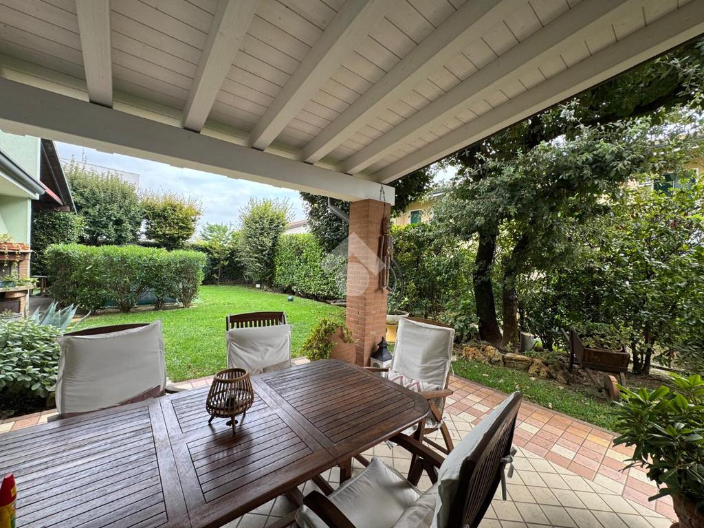 A completare la proprietà troviamo un ampio giardino di circa 600 mq, in parte verde ed in parte piastrellato, ideale per vivere al meglio gli spazi esterni in ogni stagione.